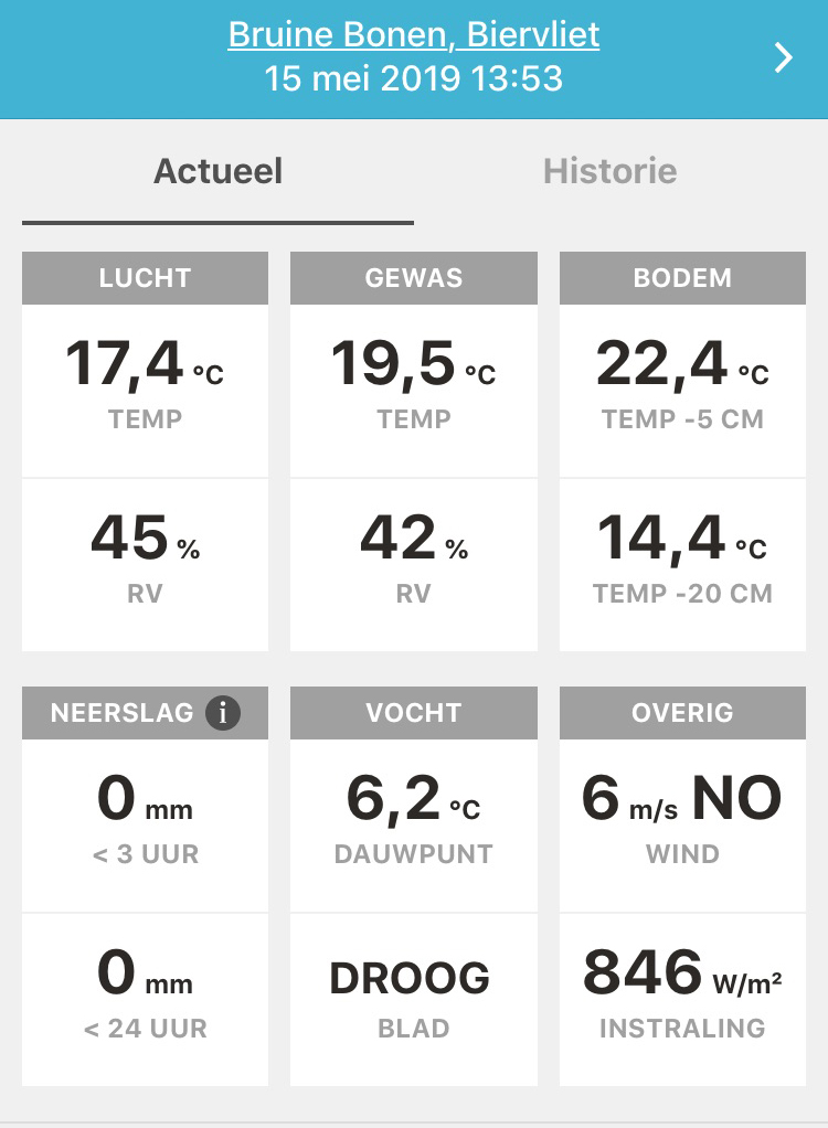 Op een perceel bestemd voor de teelt van bruine bonen heeft CZAV in de eerste week van mei een weerpaal (Fieldmate) geplaatst. Hiermee meten we onder andere de bodemtemperatuur op 5 en 20 cm diepte. We weten dat bodemtemperatuur een belangrijke rol speelt bij de kieming van bonen. Hiervoor ontstaat een toenemende belangstelling, onder andere door het wegvallen van belangrijke zaadbehandelingen. Kennis ontwikkelen over het verloop van de bodemtemperatuur kan hierbij helpen. Door data te verzamelen, te monitoren en te vergelijken kan er mogelijk aan een model worden gewerkt dat, in combinatie met de weersvooruitzichten, het meest gunstige helpt te bepalen.