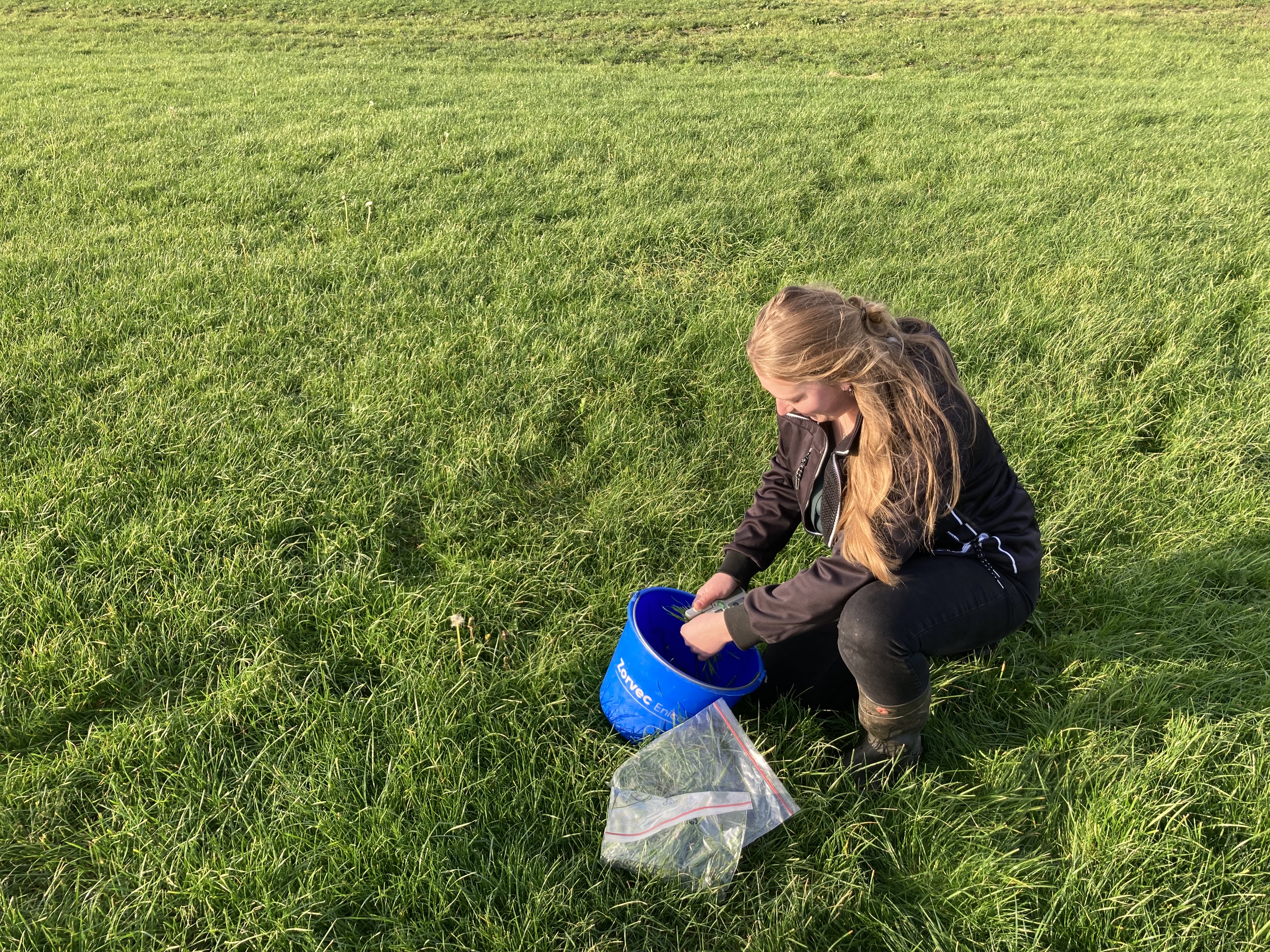 Tot op heden wordt een chlorofylmeter alleen in tarwe ingezet. De sensor meet het bladgroen van de plant en dit geeft de stikstofstatus aan. We gaan dit komende periode in gras toepassen. Na het bemonsteren van het gras met de sensor, wordt het verse gras bemonsterd met een NIRS-analyse. De stikstofstatus van de sensor en het eiwitgehalte uit het monster worden naast elkaar gezet. Er wordt gekeken of er een link ontstaat tussen de getallen. De getallen worden samengevoegd tot een ijklijn. Het getal dat de chlorofylmeter weergeeft na het meten van vers gras geeft een waarde aan het eiwitgehalte in het verse gras. Hierdoor hopen we dat in de toekomst het bijsturen van vers gras in een rantsoen makkelijker wordt.