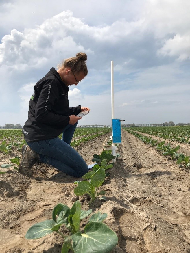 Trips wordt gevangen met blauwe vangplaten in spruitkool. Wekelijks worden deze vangplaten geteld. Deze worden vanaf eind april tot half oktober wekelijks gemonitord. In uien worden ook wekelijks trips gevangen met blauwe vangplaten van de Groene Vlieg. De vallen worden van eind mei tot het moment van rooien gemonitord.