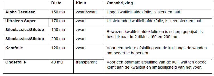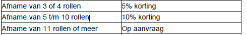 Voor kuilfolie geldt een staffelkorting; voor de staffelkorting mogen alle soorten en maten kuilfolie, onderfolie en kantfolie bij elkaar worden opgeteld.
